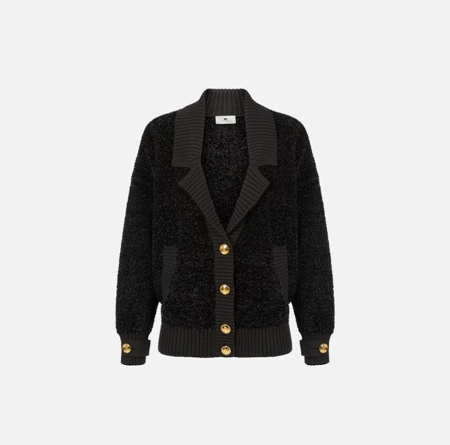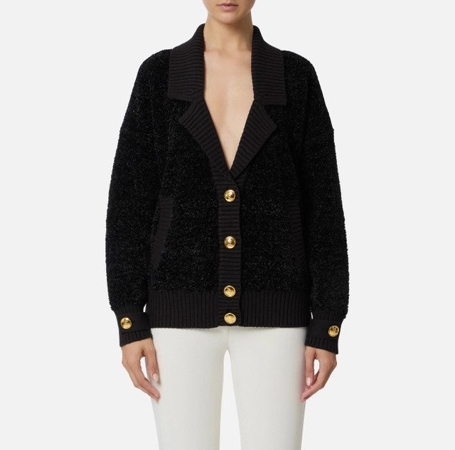 Cardigan in ciniglia bouclé con bottoni gioiello