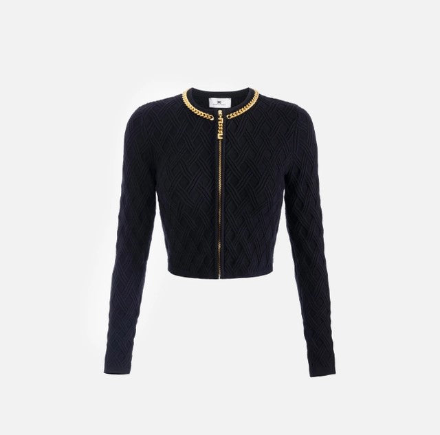 Cardigan in maglia a rombi con dettaglio gioiello