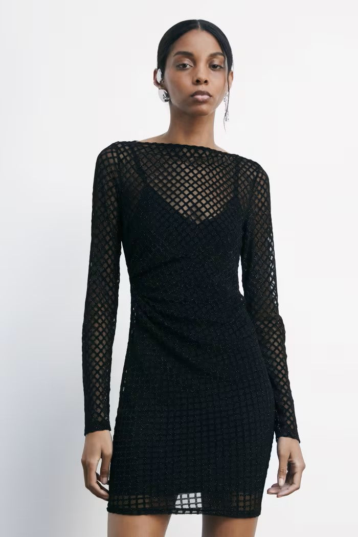 Abito mini stretch con dettagli glitter